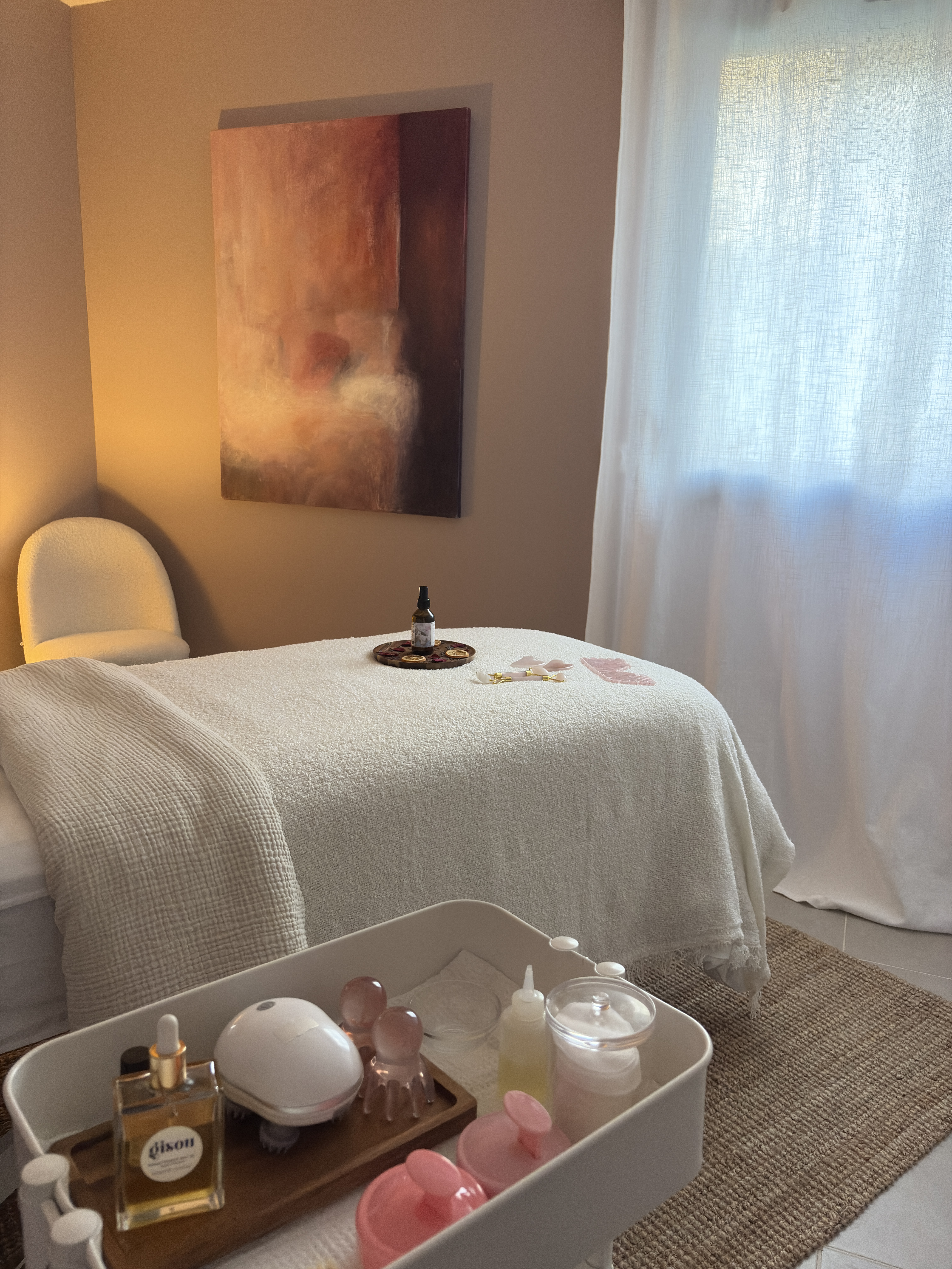 Forte de ce parcours, j’ai eu envie de créer un lieu qui me ressemble : un espace intime, chaleureux et apaisant où chacun se sent comme chez soi.